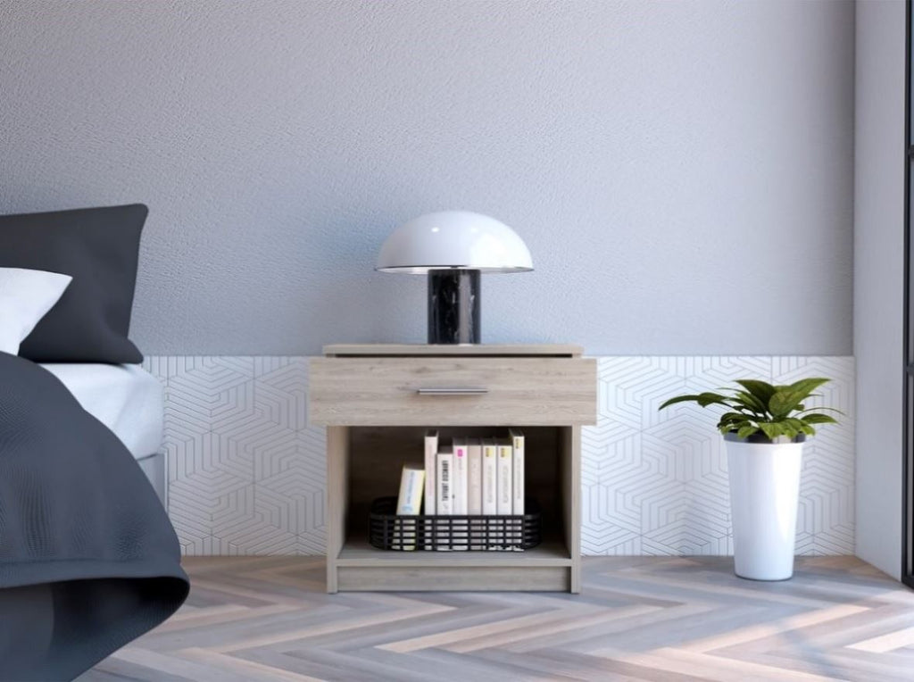 Nightstand 21"H, One Drawer, Low Shelf, Superior Top, Light Gray B097132928