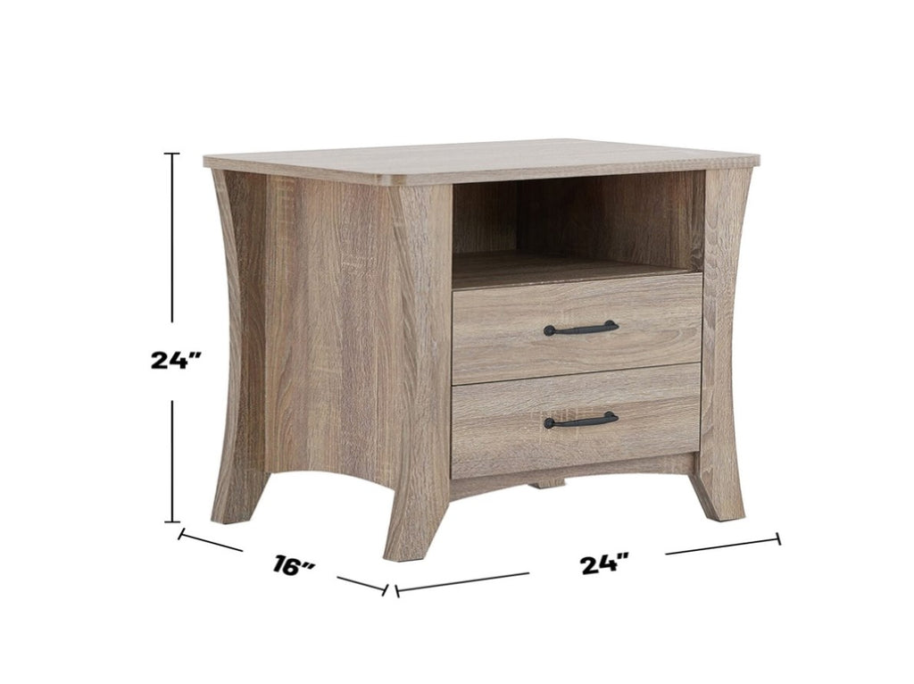 Nightstand with Top Open Compartment and 2 Drawers in Rustic Natural Finish B016P253792