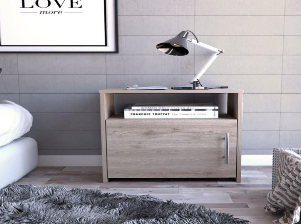 Nordico Nightstand , End Table, Side Table One Shelf, Single Door Cabinet, Metal Handle -Light Gray B07091971