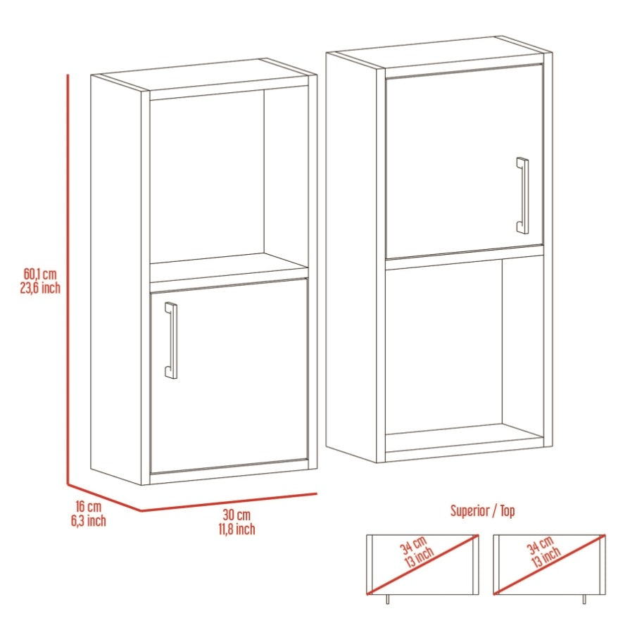 Oba 2-Pc Wall-Mounted Bathroom Medicine Cabinet with Open and Closed Storage B200P188845