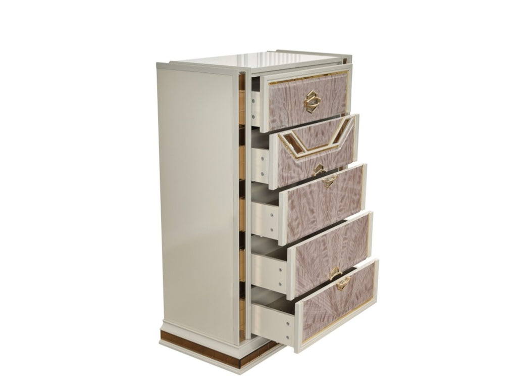 Omari Modern Style 5-Drawer Chest Made with Wood and Gold Accents in Beige B009P245443