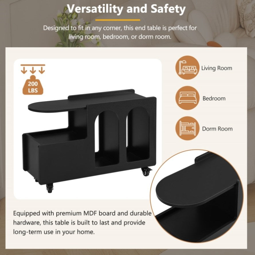 With four smooth-rolling wheels, two of which can lock, this end table moves easily on different floor surfaces. Its 360° swivel wheels make it simple to move around your home. Built-in brakes keep the table in place when needed, providing both flexibility and stability for daily use.