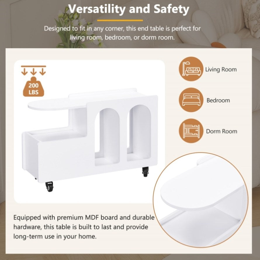 With four smooth-rolling wheels, two of which can lock, this end table moves easily on different floor surfaces. Its 360° swivel wheels make it simple to move around your home. Built-in brakes keep the table in place when needed, providing both flexibility and stability for daily use.
