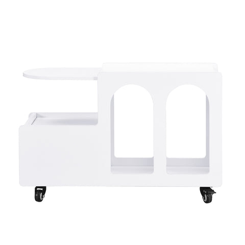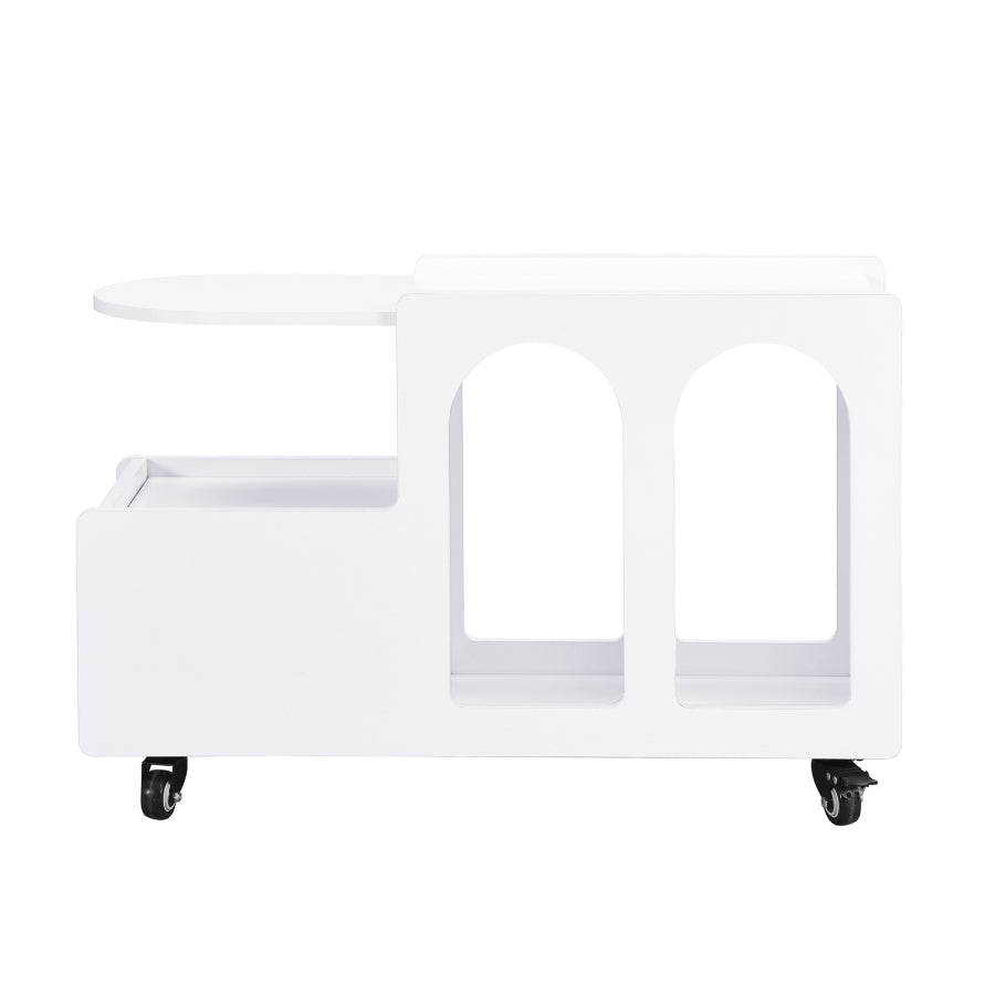 This creatively designed mobile side table adds a touch of stylish to your space. Its soft cream hue make it a focal point in any room. The simple structural design not only creates a romantic atmosphere, but also makes the whole more stable and suitable for most of your decorative styles.