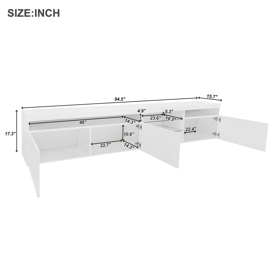 | Detailed Measurement | Overall: 94.5''W x 15.7''D x 17.3''H / Right Side Cabinet: 22.4''W x 14.3''D x 10.6''H / Left Side Cabinet: 22.7''W x 14.3''D x 10.6''H |