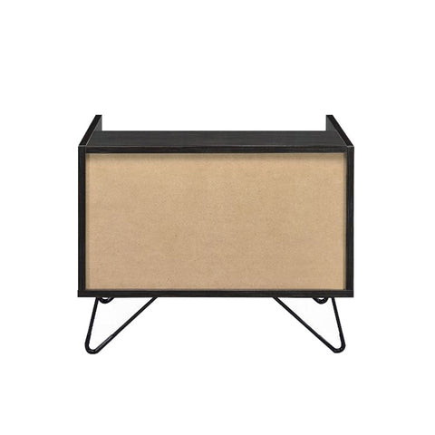 The nightstand features a clean-lined silhouette, with a rich black finish for an industrial look. There is ample tabletop space with a storage drawer and an open compartment that keeps your everyday items at hand. With design elements and versatile storage, The accent table will be an eye-catching complement to your living room or bedroom.