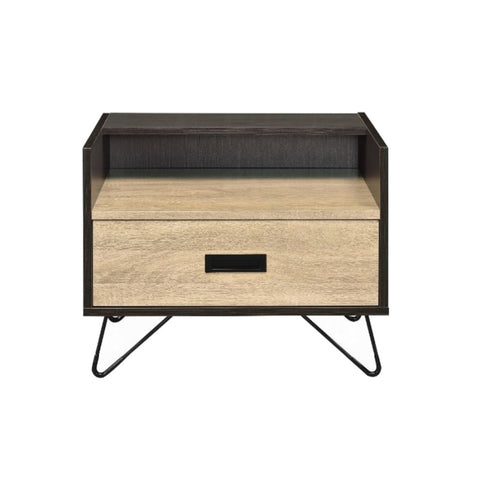 One Drawer Nightstand with Open Compartment, Oak and Black B016P256521