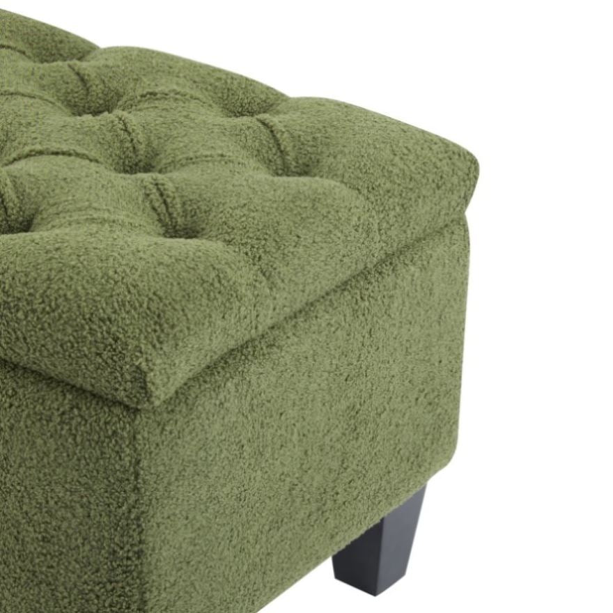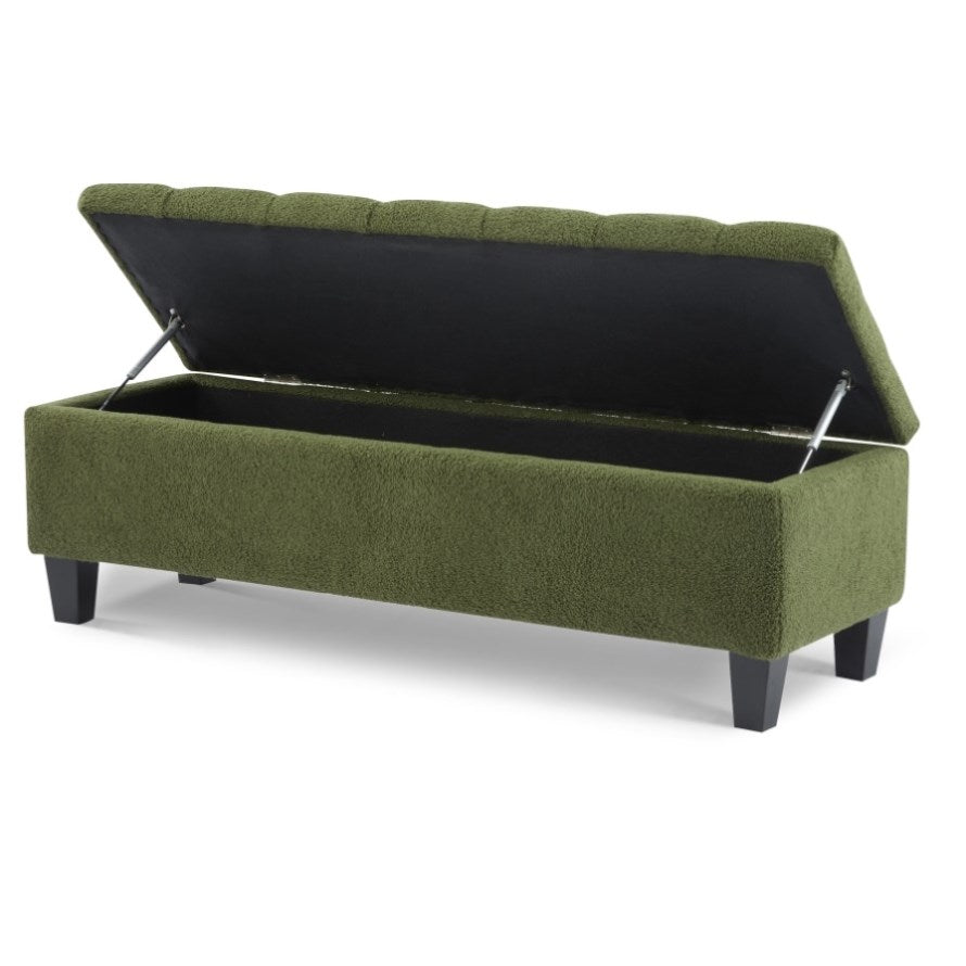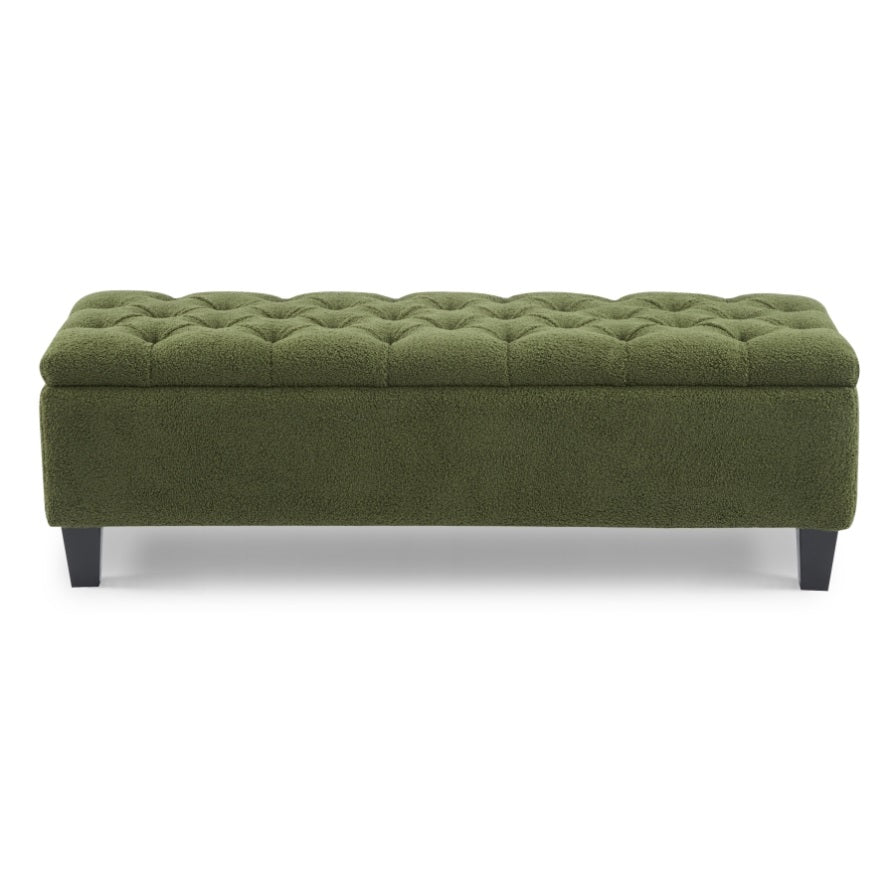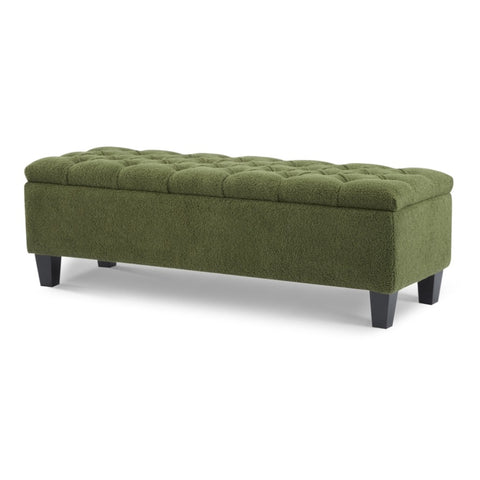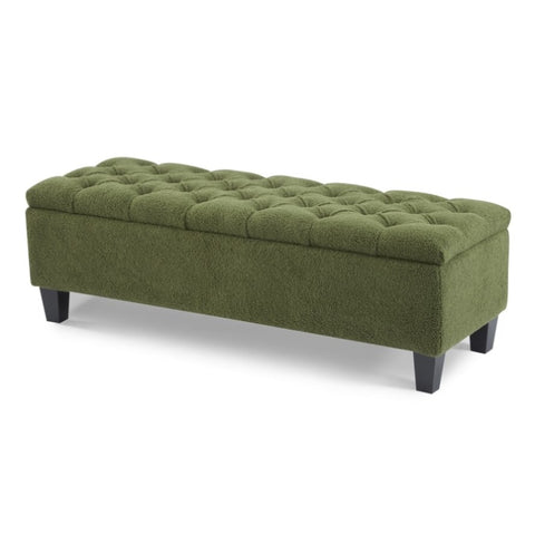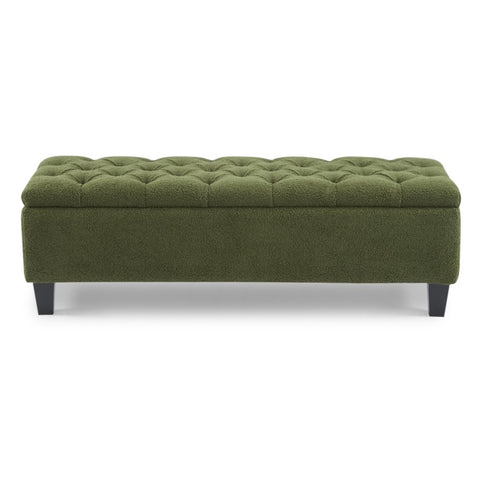 Ottoman Bench with Storage, Green Boucle Surface, Rubber Wood Legs, 300 lbs Capacity N779P294331G