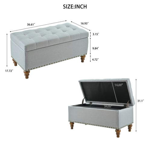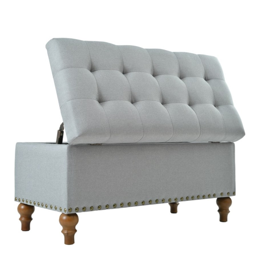 Ottoman storage bench, recessed support hinge top easy to open, rivet trim around, bedroom, W2941P239182