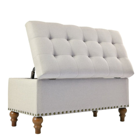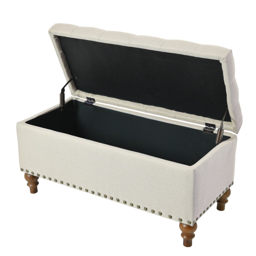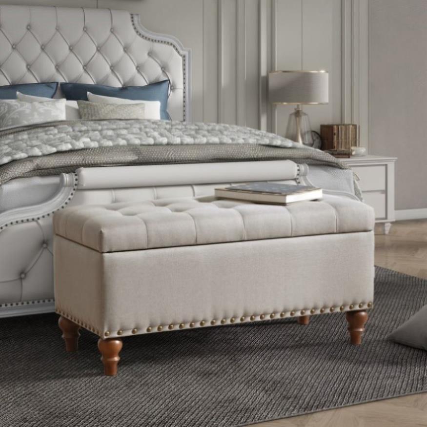 Ottoman storage bench, recessed support hinge top easy to open, rivet trim around, bedroom, W2941P242252