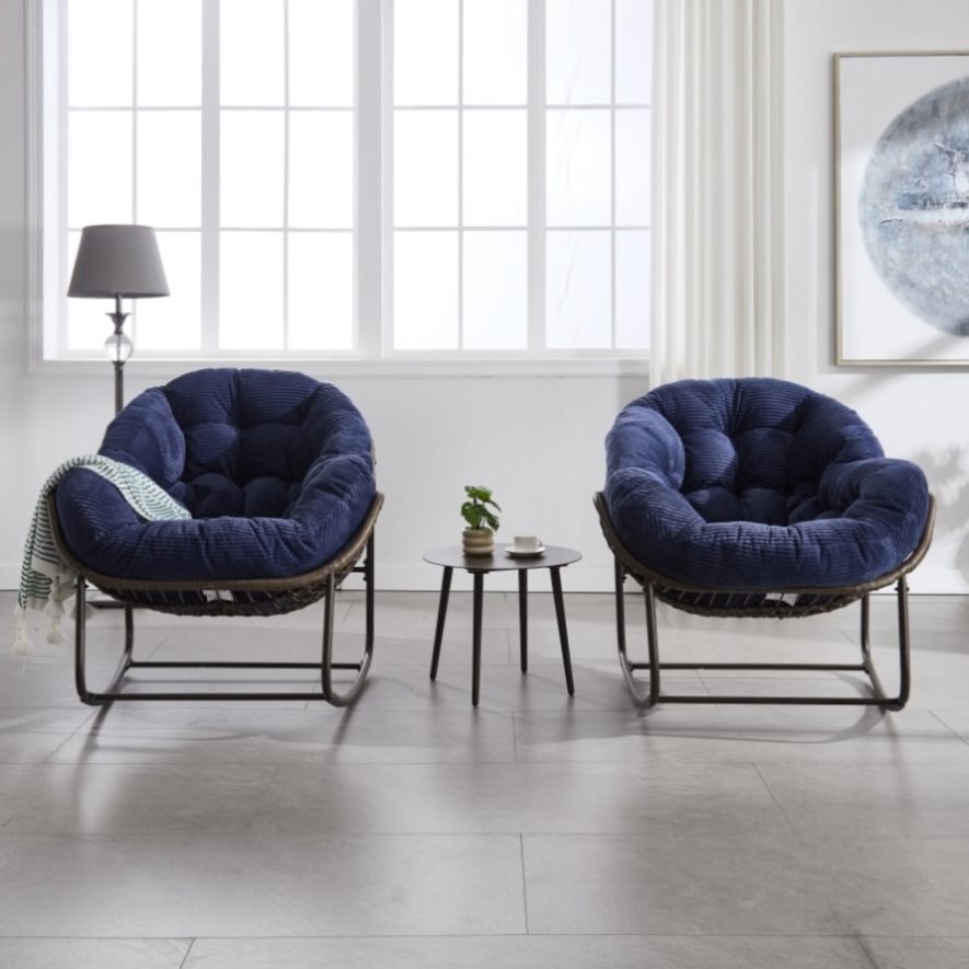 Our rattan chairs are meticulously hand-woven with high-quality synthetic rattan material, the rattan is not easy to fade and durable. Enjoy the sunbathe with our oversized rocking chair and it will bring you a different experience.