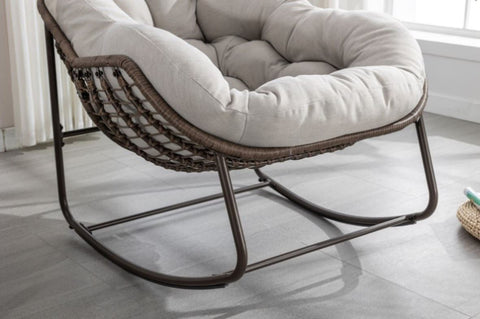 Our rattan chairs are meticulously hand-woven with high-quality synthetic rattan material, the rattan is not easy to fade and durable. Enjoy the sunbathe with our oversized rocking chair and it will bring you a different experience.