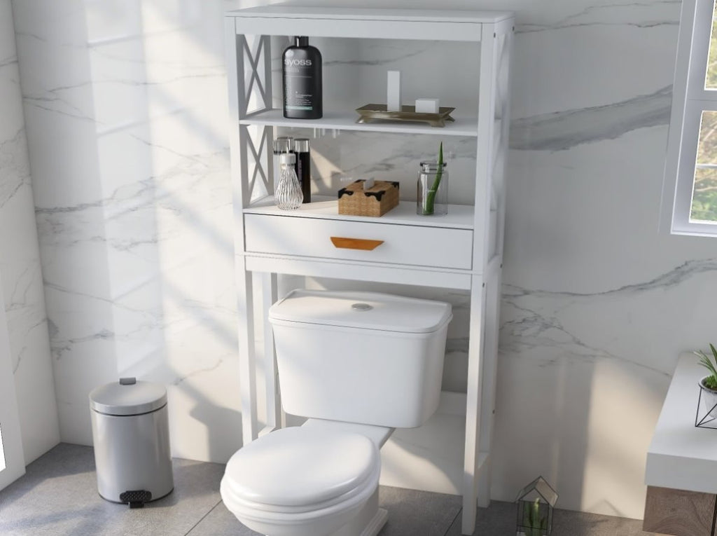 Over-the-Toilet Storage Cabinet White with one Drawer and 2 Shelves Space Saver Bathroom Rack W28227728
