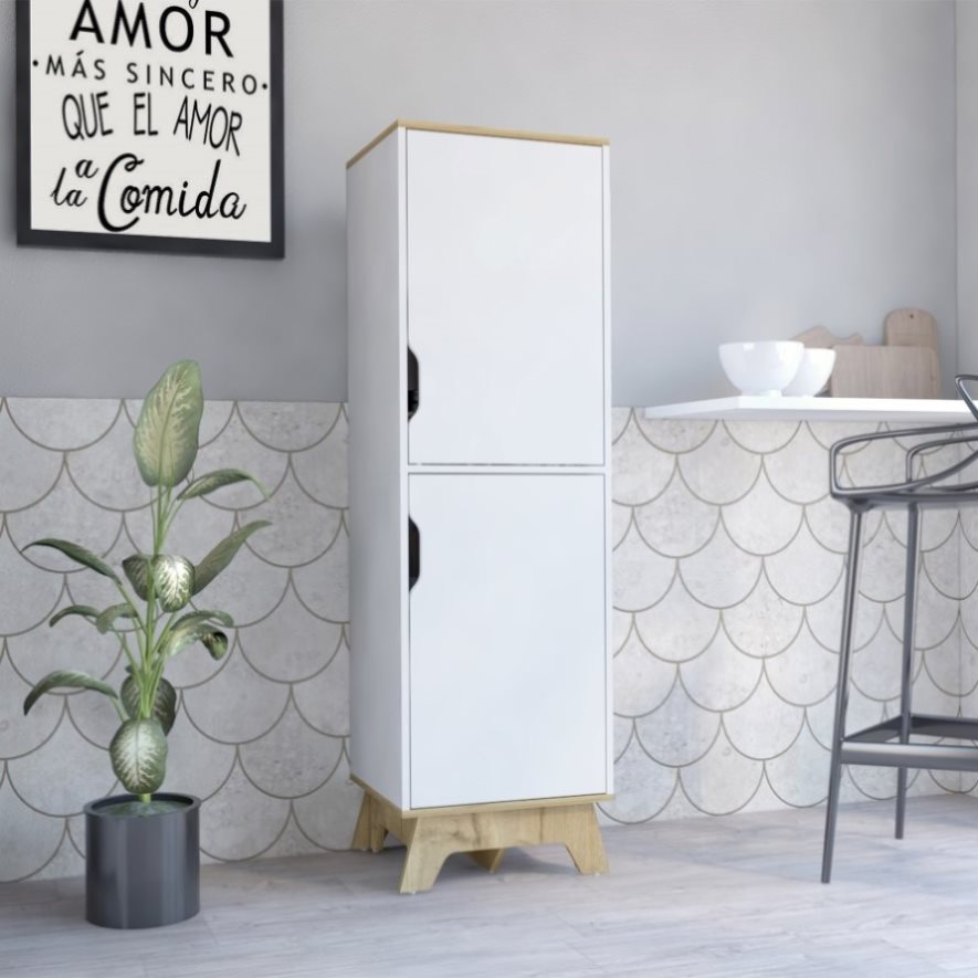 Pamplona Microwave Tall Cabinet Counter Surface, Top And Lower Double Doors Cabinets -Light Oak / B20092108