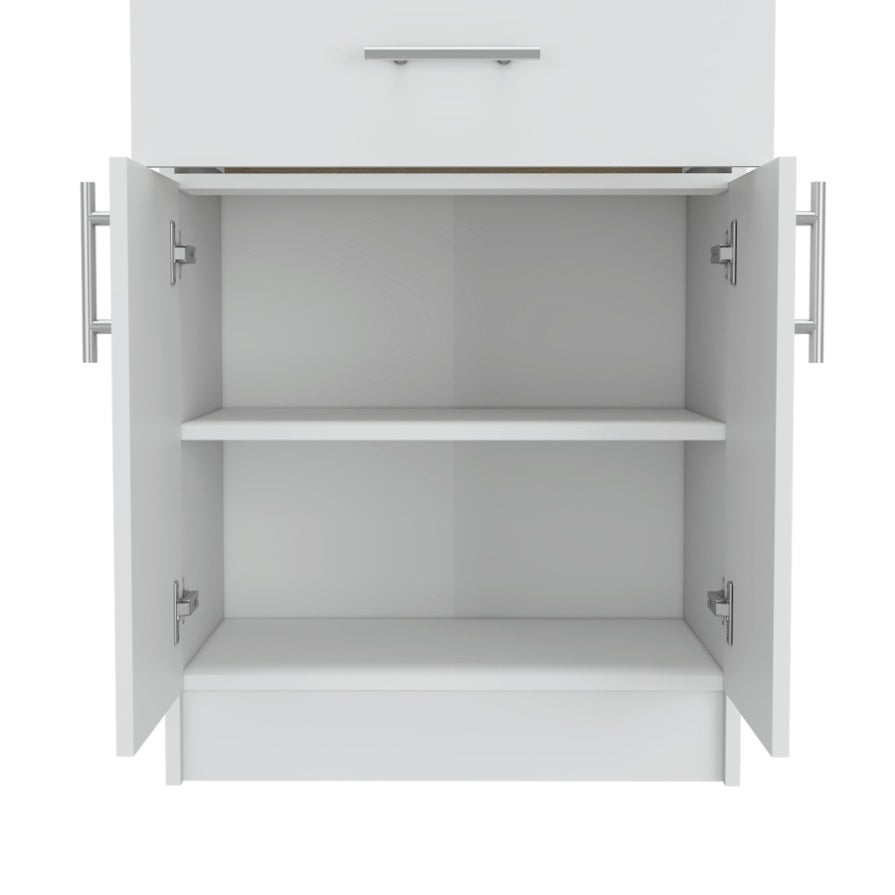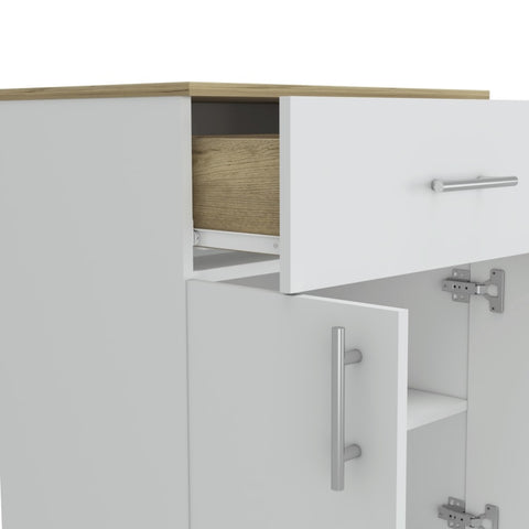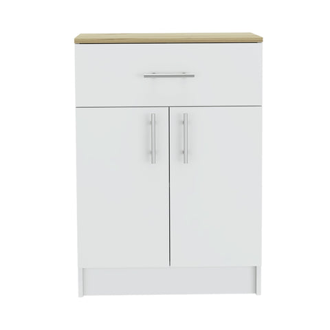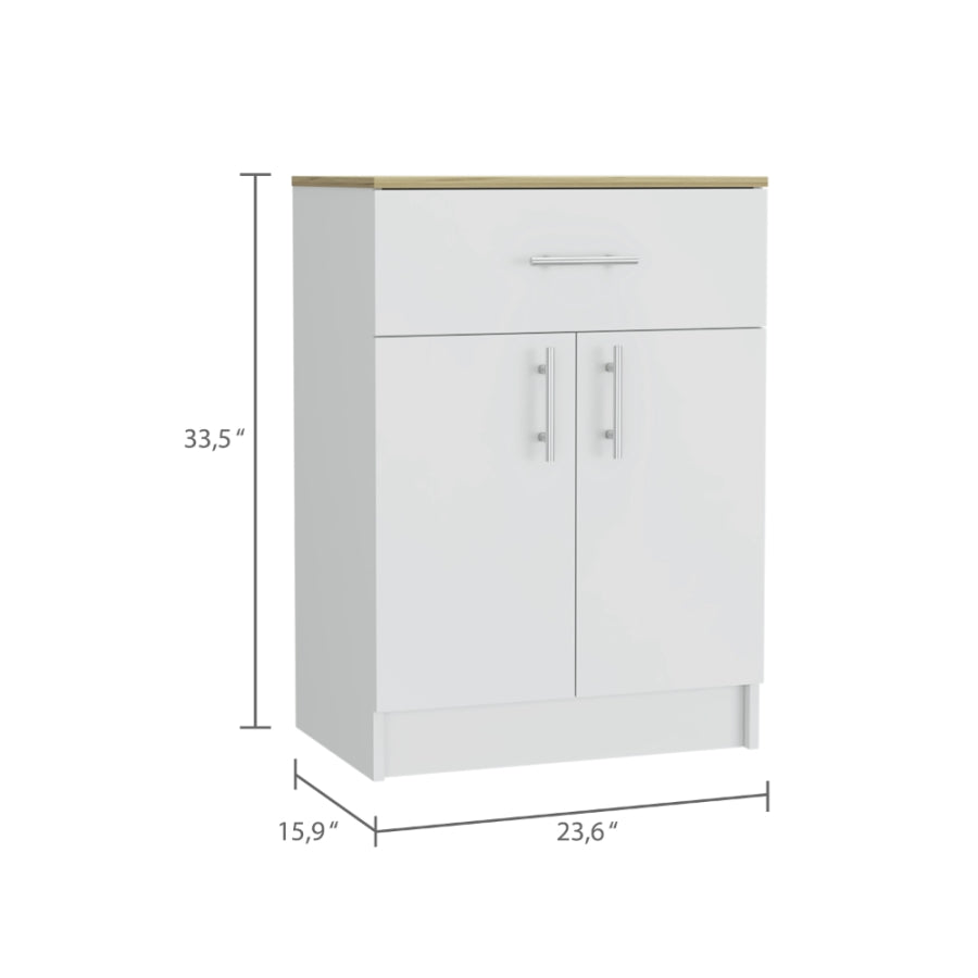 Pantry Organizer Cabinet 33" H, One Drawer, Two Interior Shelves, Two Doors, White/Light Oak B097120607
