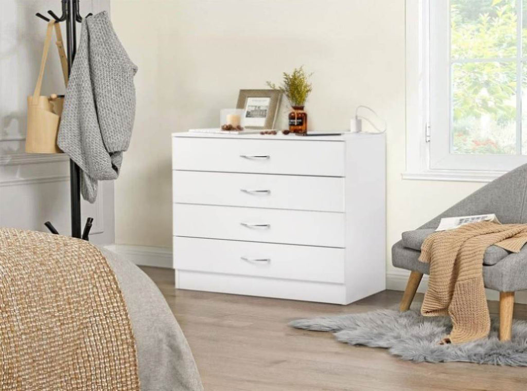 What a wonderful PB Wood Simple 4-Drawer Nightstand Dresser with USB Ports & Outlet White! It is made of P2 PB wood material, durable and non-toxic for you daily use. It is suitable for indoor use, likes family room, bedroom and living room. It is the perfect solution to save space and store scattered and small gadgets. It is delicate design with beautiful appearance, and gives color to your life. Actually, it is a good decoration to embellish your home. How can you miss it anymore?