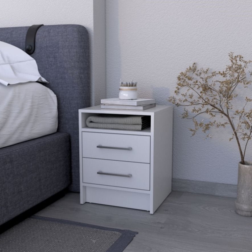 Philadelphia Nightstand, Two Drawers, Concealed Shelf