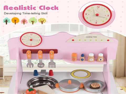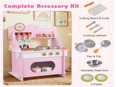 Pink Wooden Toddler Play Kitchen with Sink & Accessories, Safe Gift for Kids 3 00113003