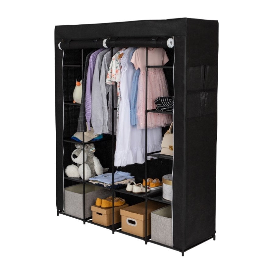 Troubled about storage issues in your house? Try our 5-Layer 14-Compartment Non-woven Fabric Wardrobe Portable Closet! With 5 layers and 14 spacious compartments, it adds more space for all your clothes and accessories and makes your home neatly organized. Two hanging rods on the top let you store longer outfits. Crafted into a sturdy alloy construction with non-woven fabric cover, it is durable for long-lasting use. Rolling front doors keep the contents protected from dust and moisture. Don't hesitate to bring it home!