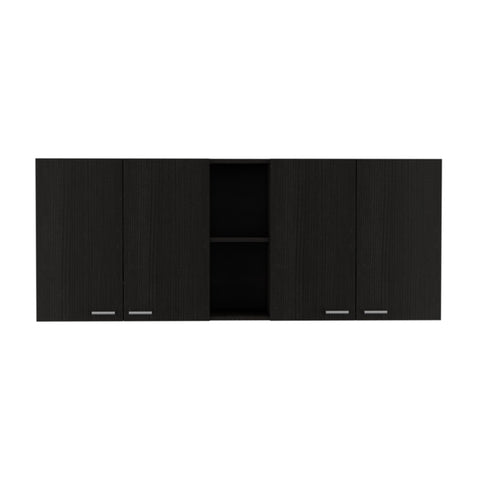 Portofino 150 Wall Cabinet, Double Door, Two External Shelves, Two Interior Shelves -Black B20091978