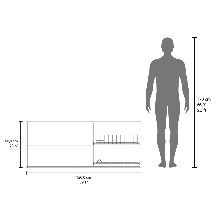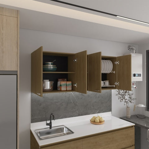 Portofino 150 Wall Cabinet, Double Door, Two External Shelves, Two Interior Shelves Natural Oak B200P286977