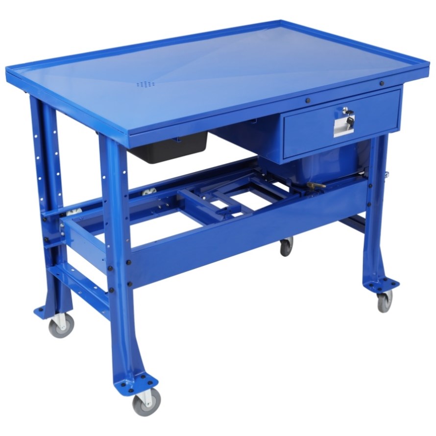 For the disassembly of engine components, utilize this robust steel worktable. Table top size is about 51inch*31inch. Subsequently, clean the disassembled parts using the provided parts washer.