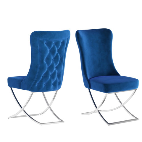 PrimeNest Noblesse Collection Upholstered Silver Legged Dining Chair, Set of 2, Blue B030P286147