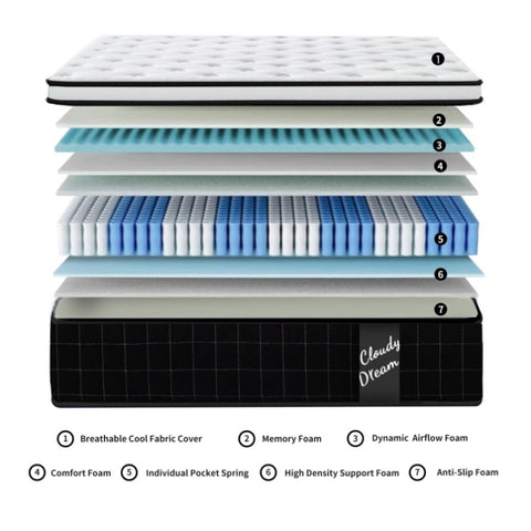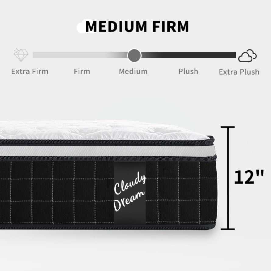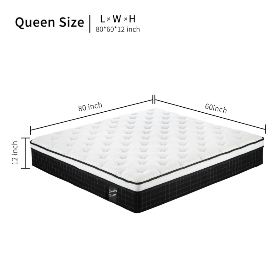 QUEEN Size 12 Inch Hybrid Mattress Individual Pocket Spring 7-Zoned Memory Foam Knitted Cover W3017P306878