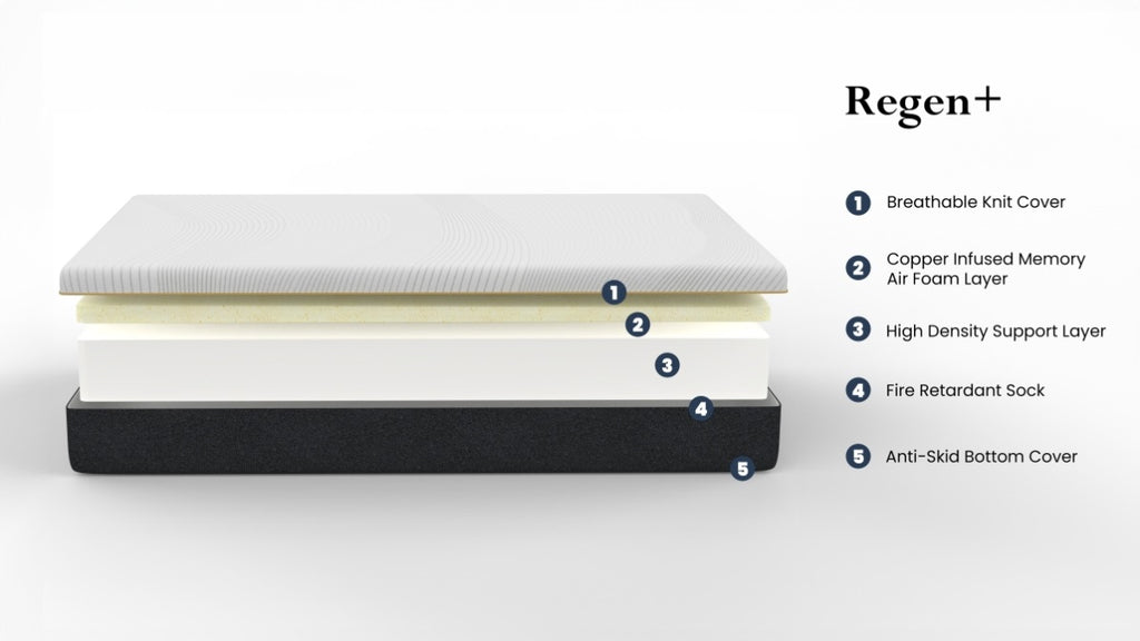 Experience ultimate comfort on the Regen 10" Memory Foam Mattress from Bridgevine Home. The 3 layer craftsmanship features a breathable, cool-to-the-touch knit cover and a layer of Cooling Copper Infused Memory Air Foam atop high-density support foam. The sustainable, soft, supportive CertiPUR-US foam is designed to respond to the weight and curves of your body, capture and distribute heat to regulate temperature and ensure low motion transfer so you can sleep soundly when your partner tosses and turns. Tailored to back and side sleepers, this Medium mattress is sure to provide enhanced, pressure-relieving and rejuvenating sleep night after night.