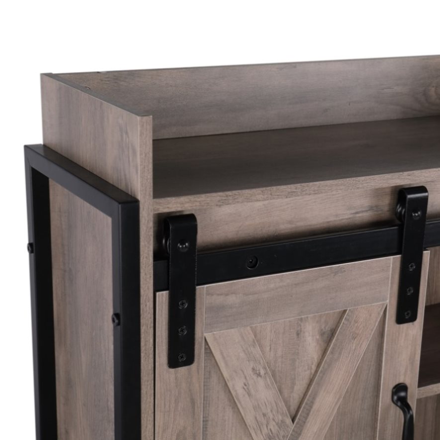 Retro Style MDF With Triamine Iron Frame Sliding Door Three-Layer Rack Bathroom Cabinet 54703194