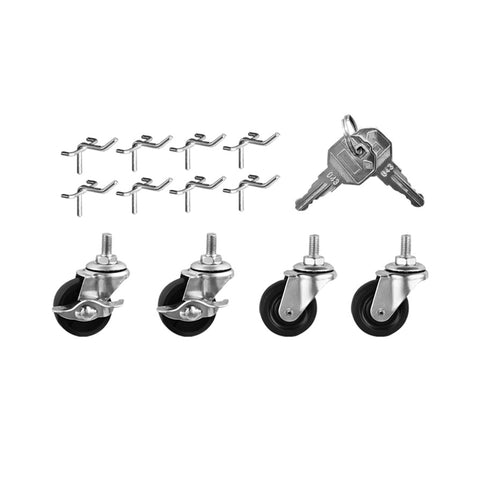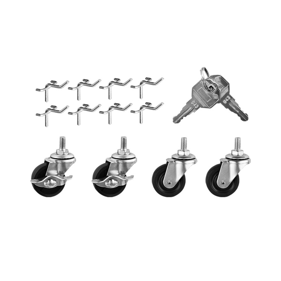 The main body of the tool chest is made of high-quality cold-rolled steel, with a strong structure and strong load-bearing capacity. The surface of the toolbox is coated with anti-rust and anti-corrosion coating, which is smooth, wear-resistant and durable. The inner side of the bottom cabinet's door is designed with grid and it comes with easy to hang hooks to help you find tools quickly.