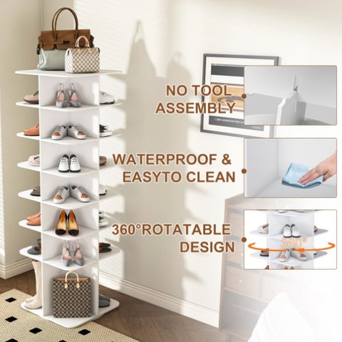 7-TIER SHOE DISPLAY HOLDER - Keep your home clean and keep track of your shoes better with this spinning shoe rack tower; Makes every shoe visible and save so much of your room closet storage space