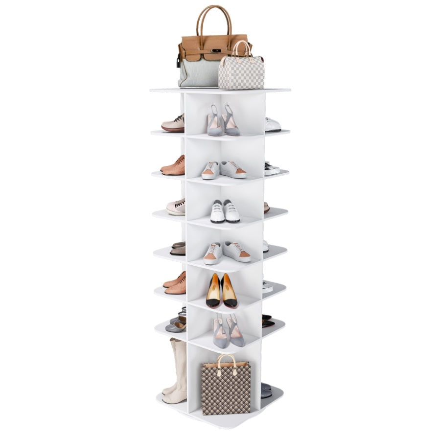 ORGANIZED AND BEAUTIFUL - Make your shoes neat and organized with this rotating shoe rack tower lazy susan; The space saving design can hold up many shoes or bags in a compact space; SIZE: 23.7"W x 23.7"D x 72.5"H