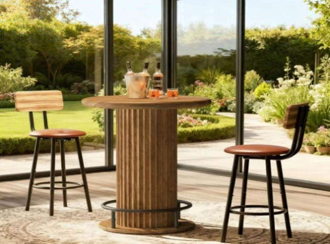 - Chic Aesthetic Fusion: Boasting a fluted wooden base and a round tabletop, this bar table blends vintage charm with modern minimalism. Its warm wood tone creates a cozy atmosphere, effortlessly enhancing the style of your home bar