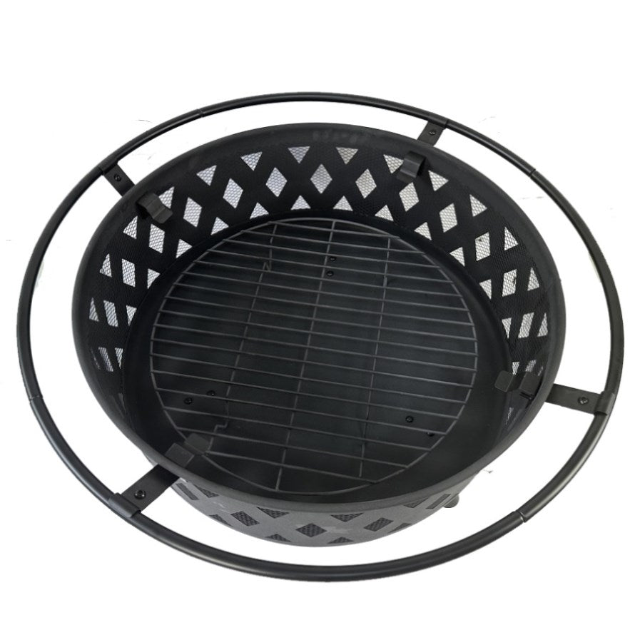 Round fire pit with net cover, fire poker, diamond mesh, metal wood burning outdoor fire pit, W1951P254205