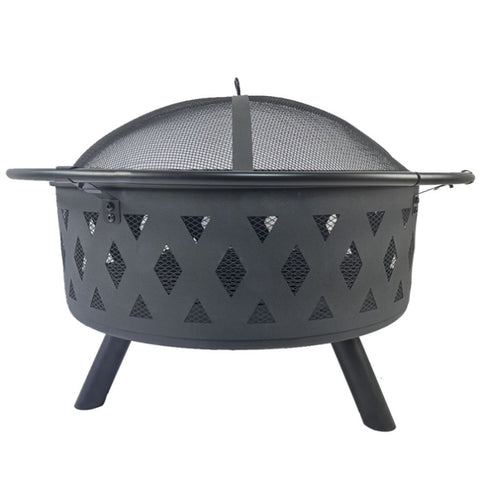 Designed for outdoor use, the fire pit is made of powder-coated steel to resist rust for long-lasting use on any patio, porch, backyard, or poolside. This outdoor firepit is meant to be used for wood bonfires only and includes a matching black safety screen to help keep fires contained.