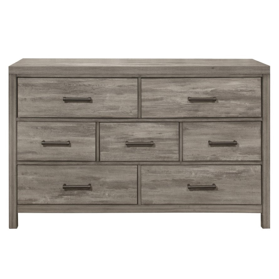 Rustic Style Bedroom Dresser of 7 Drawers Weathered Gray Finish Premium Melamine Laminate Wooden B011P146008