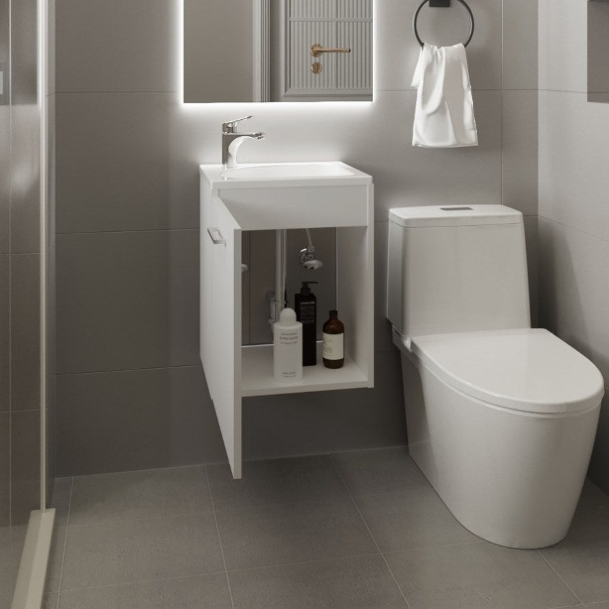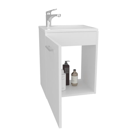 Saju Floating, Wide One-Door Cabinet Vanity, With Resin Sink And One Shelf, Bathroom Storage, White B200P335387