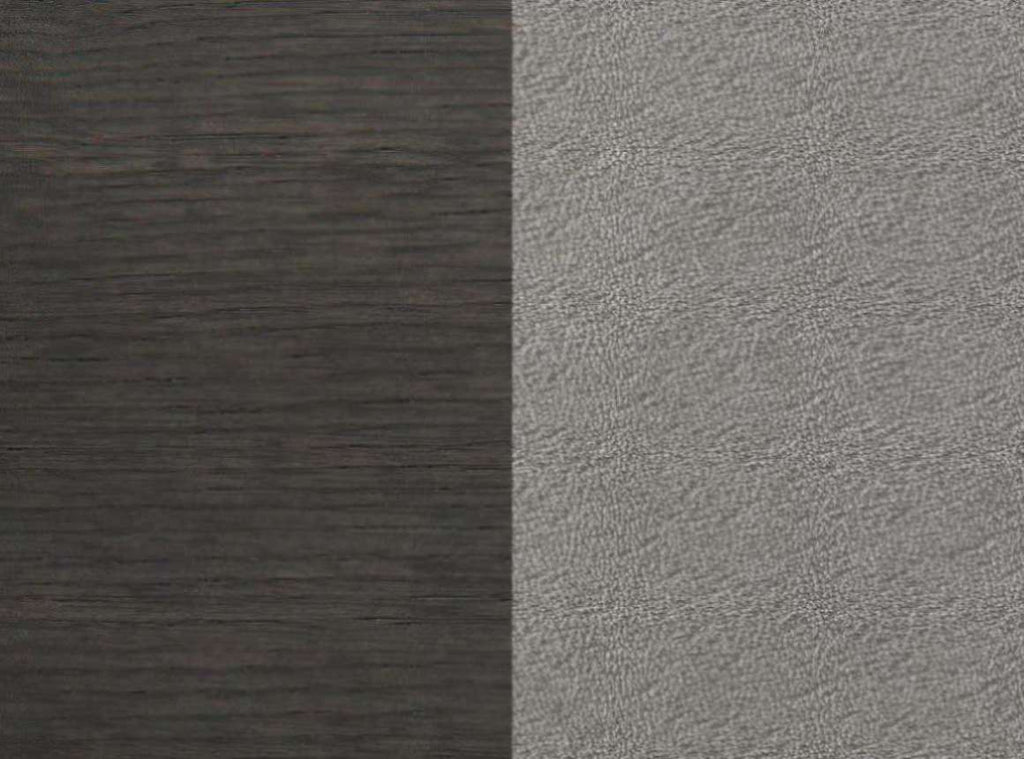 Cushioned seats upholstered in a soft, grey fabric offer a comfy resting place