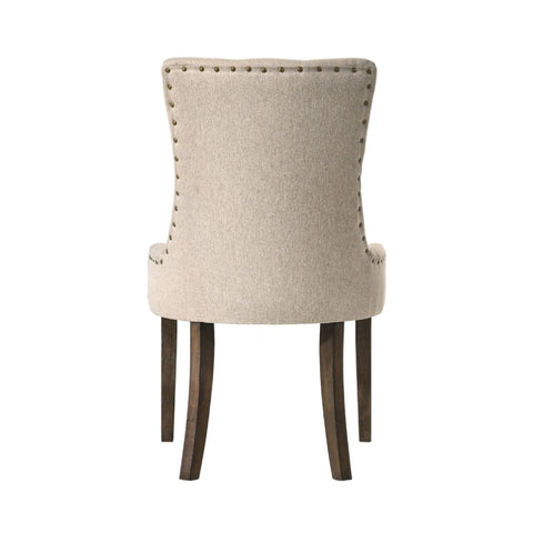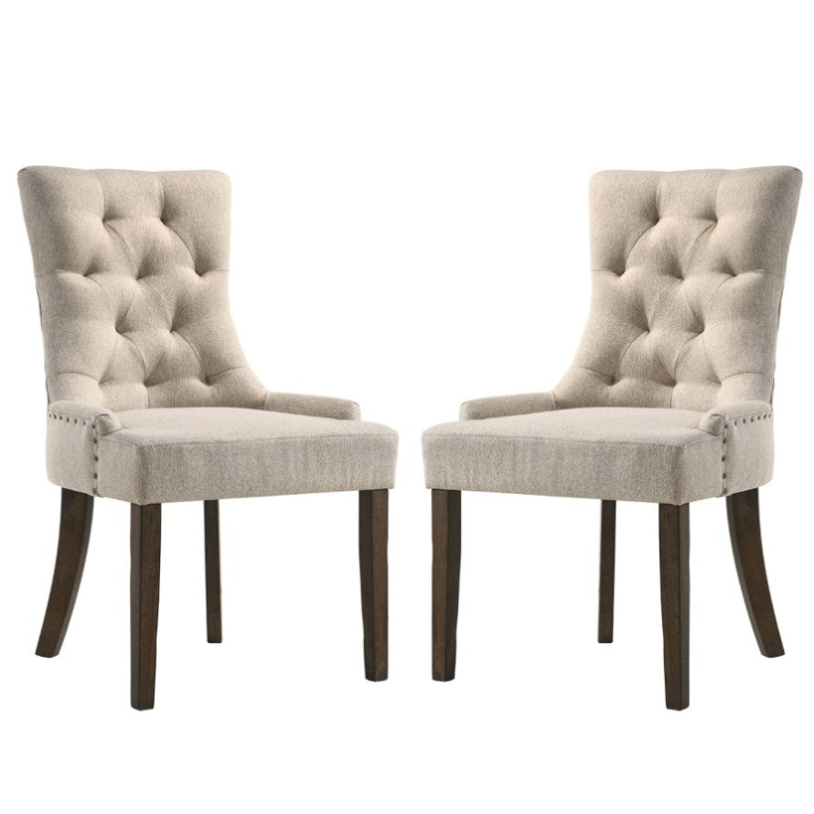 Set of 2 Fabric Upholstered Dining Chairs, Beige and Weathered Oak B016P315231