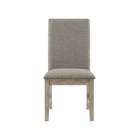 Set of 2 Side Chairs Upholstered Backrest Seat Nailhead Trim Brown Gray Finish Dining Furniture B011P239562