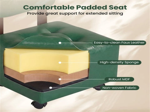 • Cushioned Comfort: Each small rolling footrest stool features a high-density sponge padded seat and an ergonomic backrest, providing a comfortable and supportive seating experience.