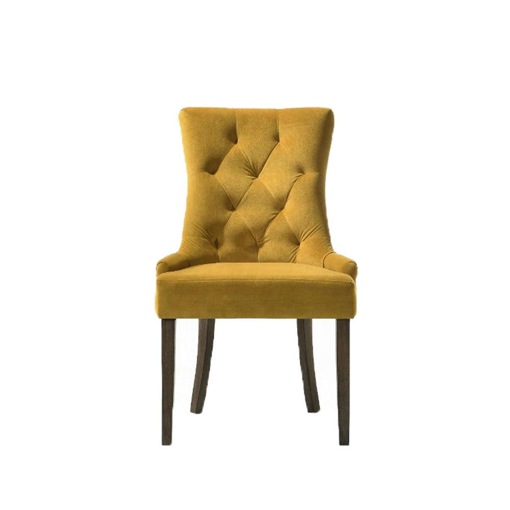 Set of 2 Velvet Upholstered Dining Chairs, Yellow and Espresso B016P315262