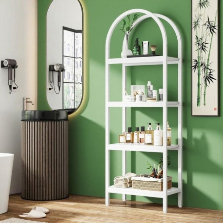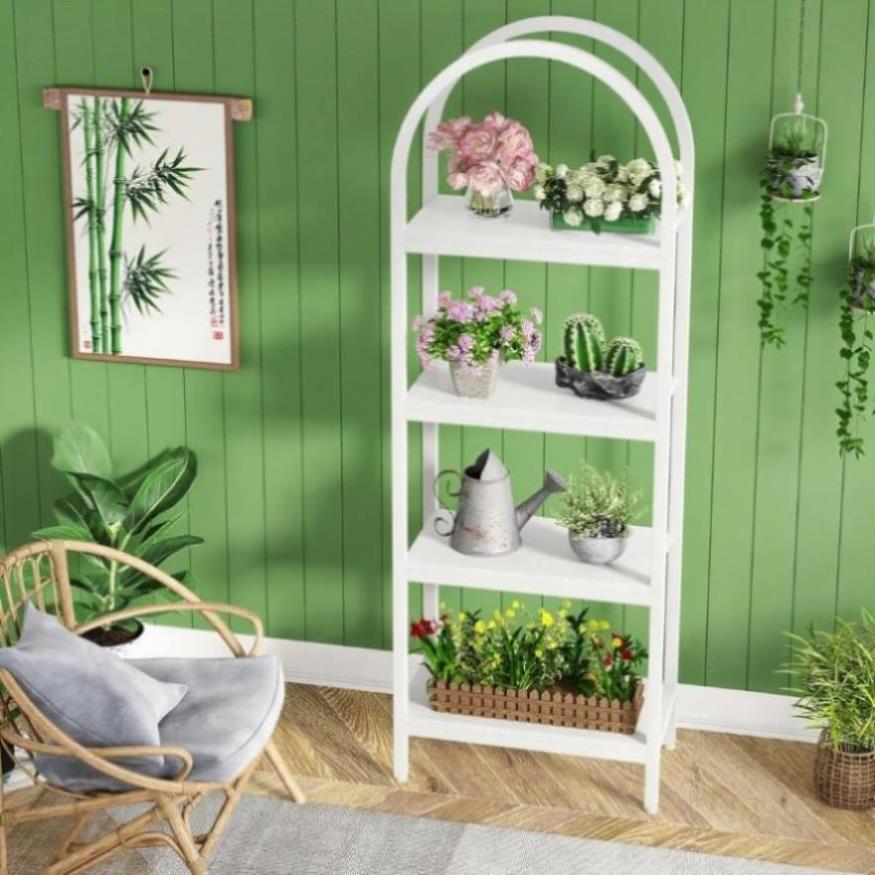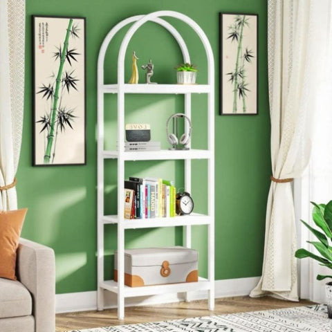 【Generous Capacity】 This 4-tier arched bookshelf provides a substantial amount of storage, capable of accommodating your beloved collection of books, framed photographs, plants, or decorative items. It's also suitable for showcasing academic awards and other precious mementos. Measurements: 11.81" D x 23.62" W x 70.86" H.