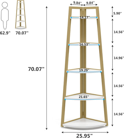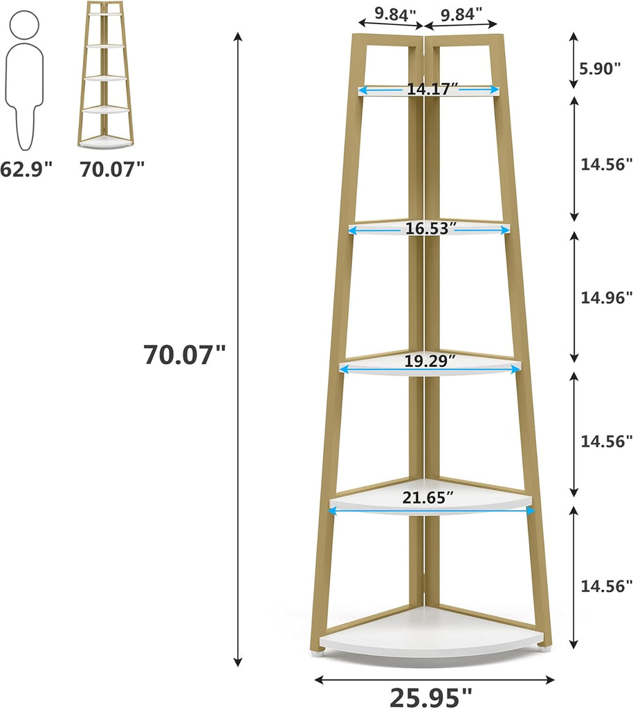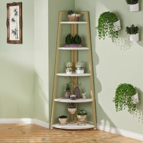 • ✔ 【Multifunctional Corner Storage Shelf】: This tall shelving unit fits great in any corner of living room, bedroom, home office, kitchen, hallway, balcony, bathroom etc., works well as corer stand shelves, small bookshelf, display shelf, plant stand, flower rack for limited space