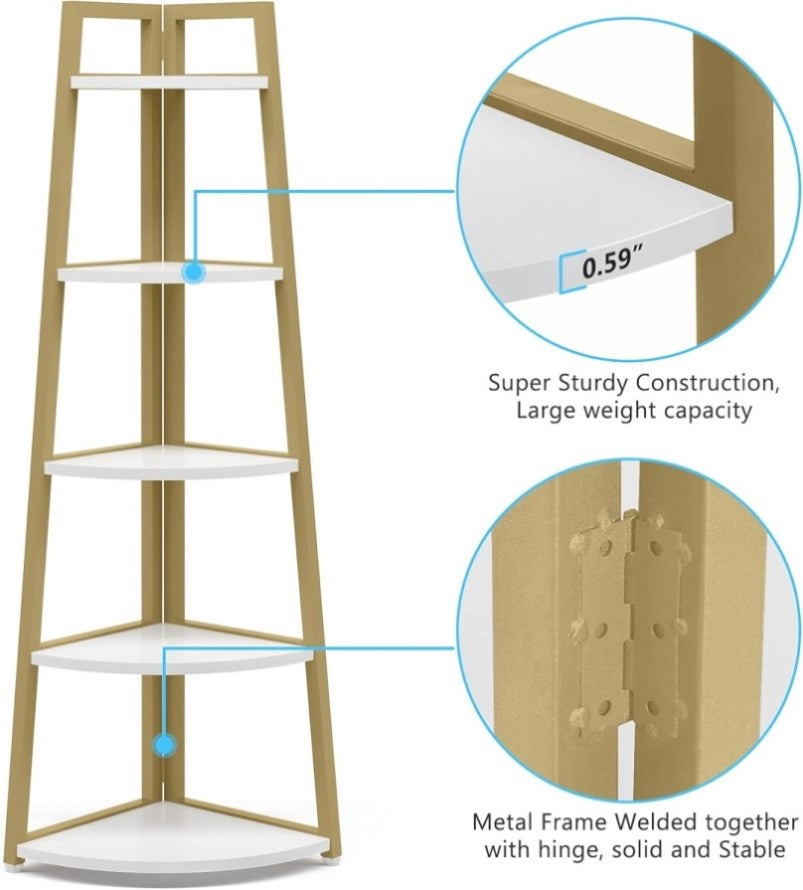 • ✔【5 Shelf Large Storage Capacity Yet Space Saving】: 5-Tier shelves design makes full use of any limited space or odd corner to provide additional storage space for small items or knickknacks
