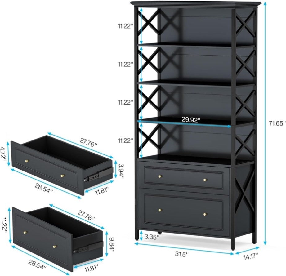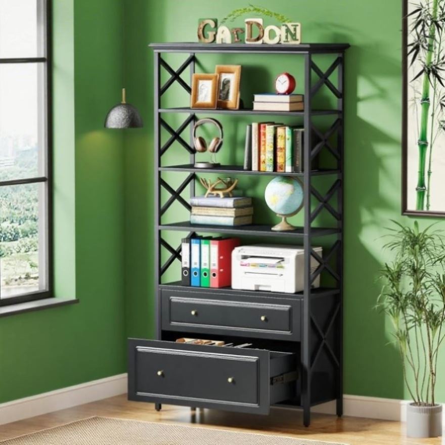 [ Practical and Multi-purpose ]- Whether you need a stylish black bookshelf for your home office, a black filing cabinet, or a versatile storage solution for any other room, Tribesigns 5 Tier Bookshelf with 2 Drawers is the great choice. Its practical and multi-purpose design ensures that it can fulfill all your storage needs, while adding a touch of sophistication to your space.