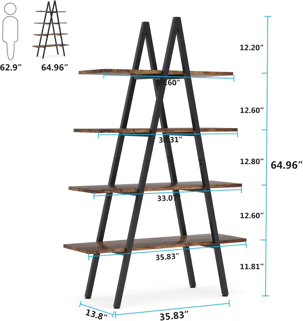• ✔【Ample Storage Yet Space Saving】: 4-Tier large open shelves make good use of the vertical storage space that helps bring your storage and decoration to a new level, there are plenty of space for storing or displaying your favorite books, knickknacks, family photos, ornaments, collections