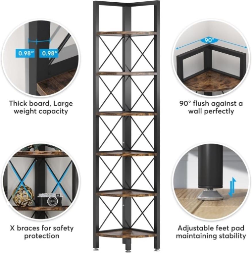 ✔【Solid Construction, Large Weight Capacity】: The corner stand made of thick board & sturdy metal frame that ensures stability and durability. X braces in the back prevent things from falling down. The corner unit is sturdy enough to hold heavy duty goods like kitchenware, small aquarium