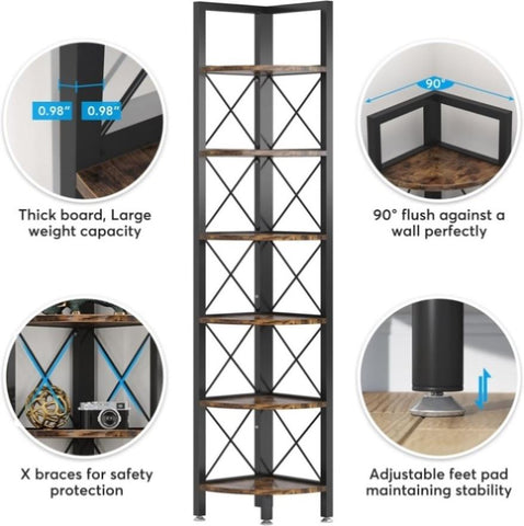 ✔【Large Storage Capacity Yet Space Saving】: 6-Tier shelves design makes full use of any limited space or odd corner to provide additional storage space for small items or knickknacks